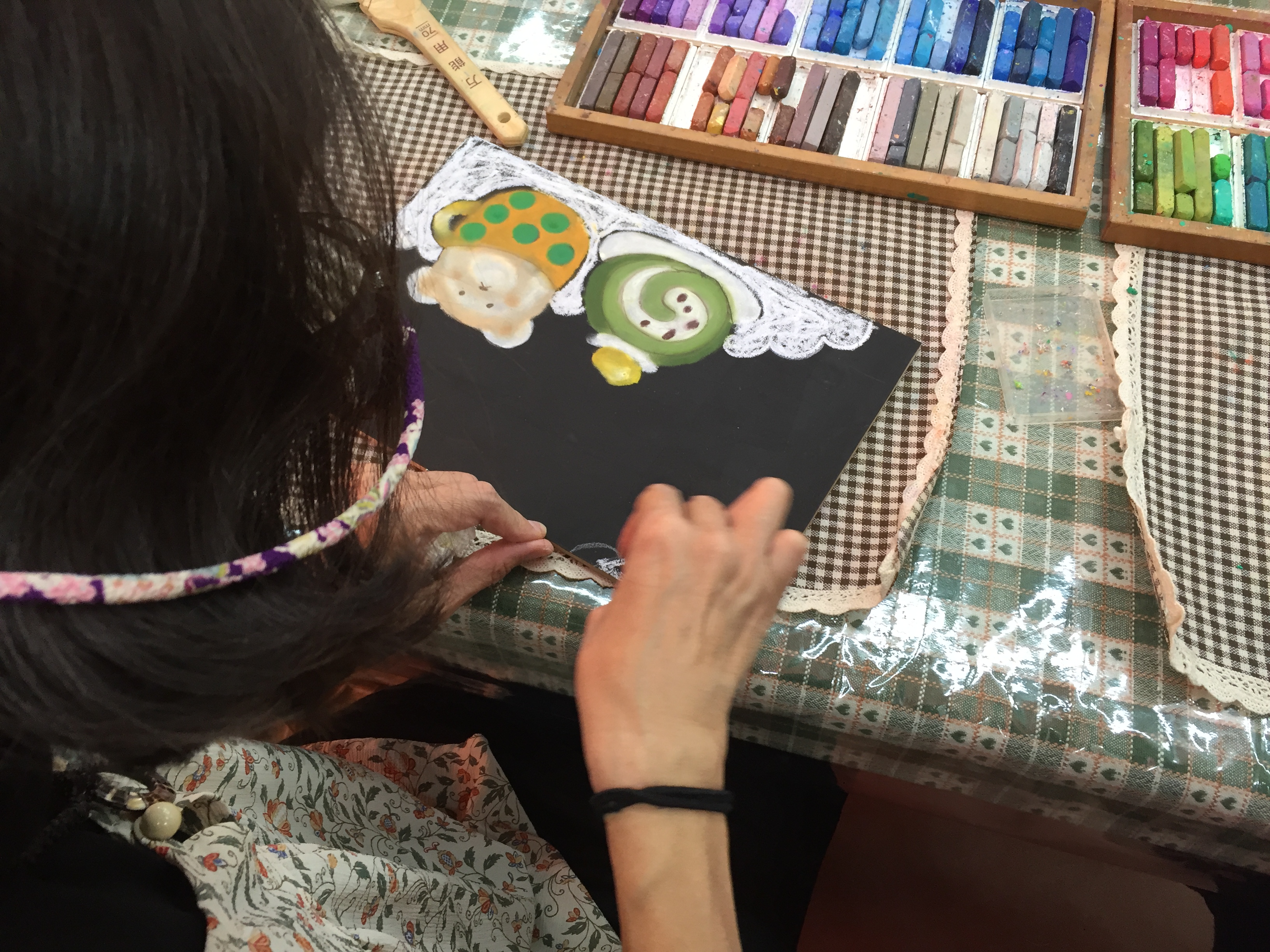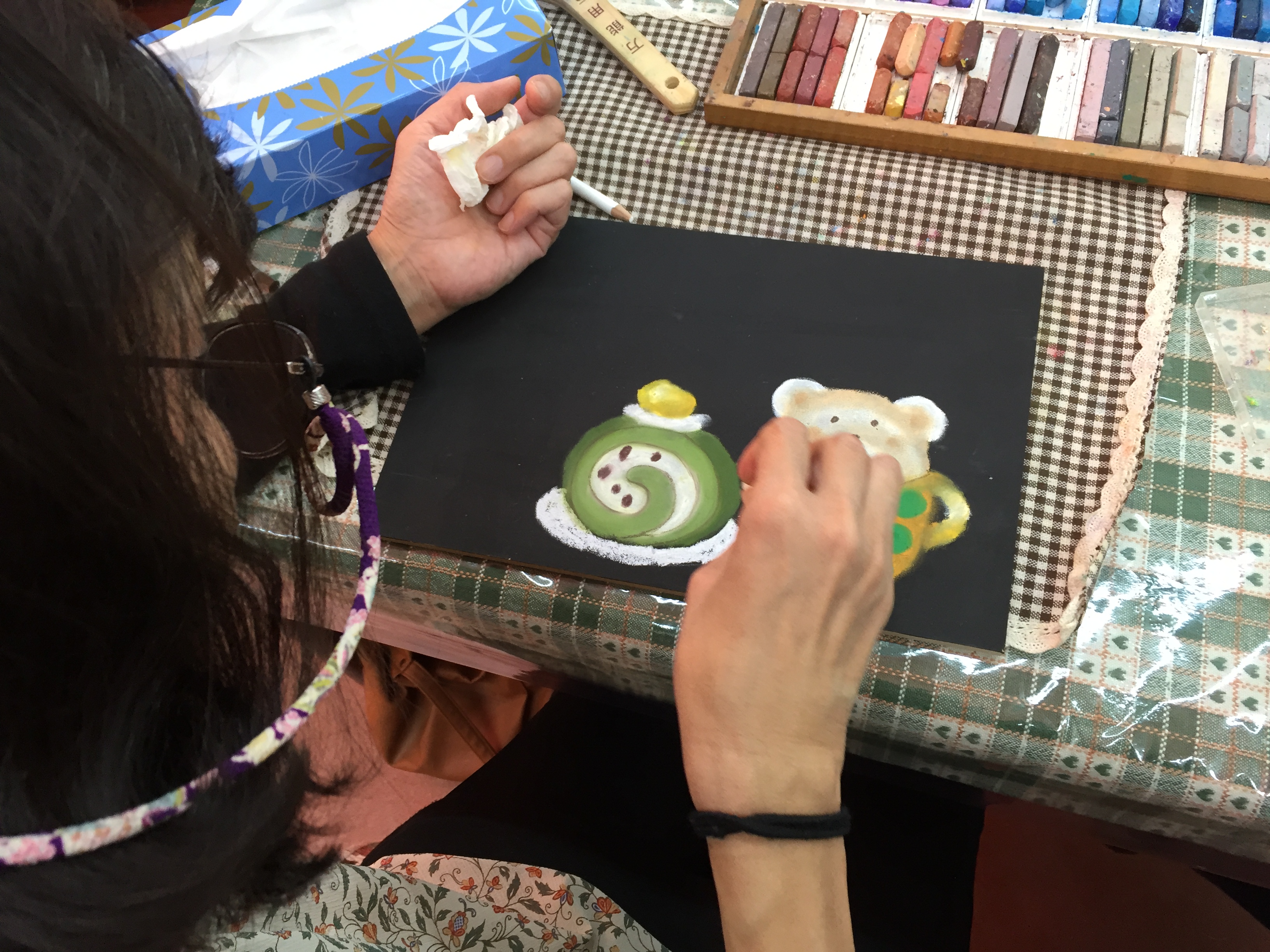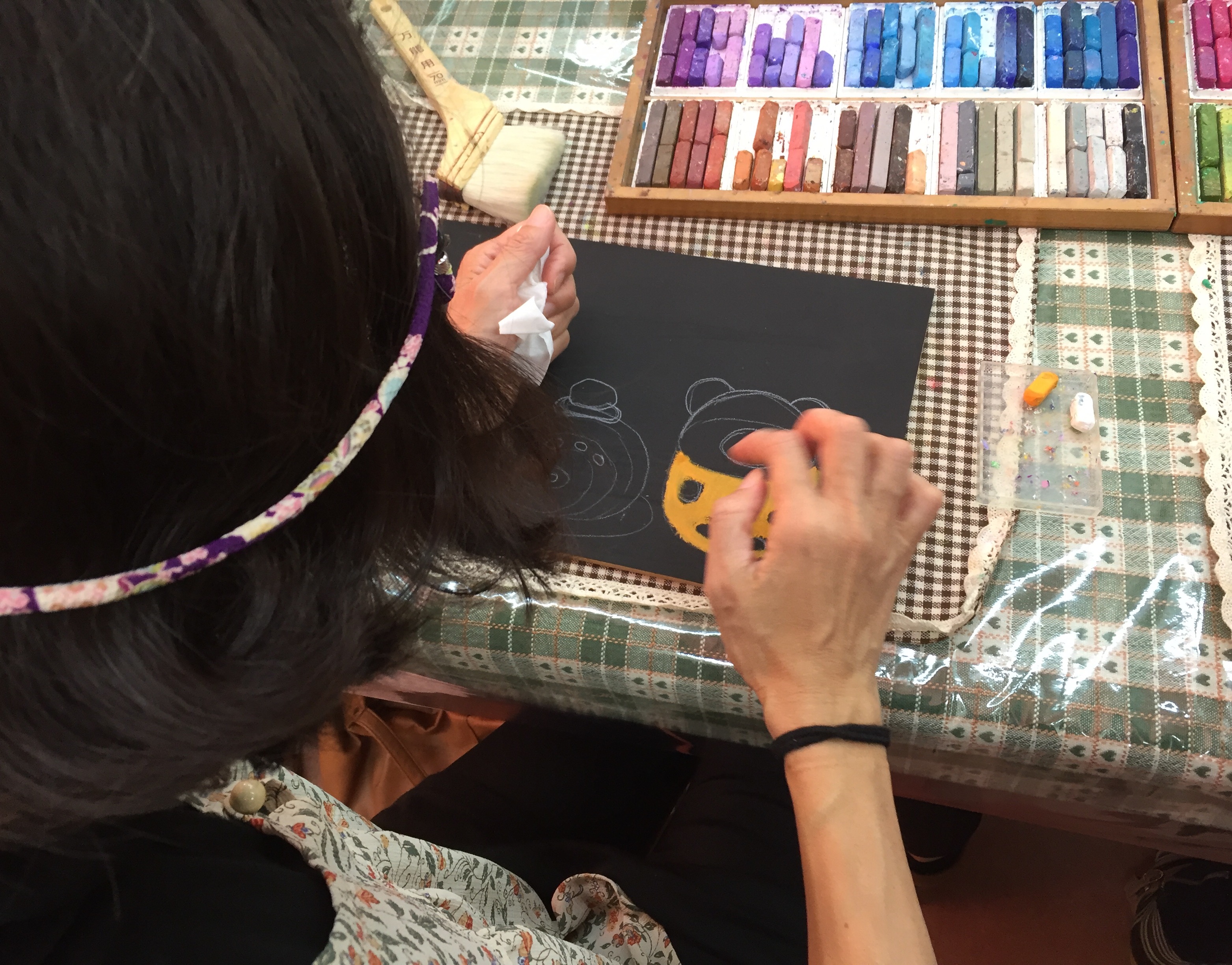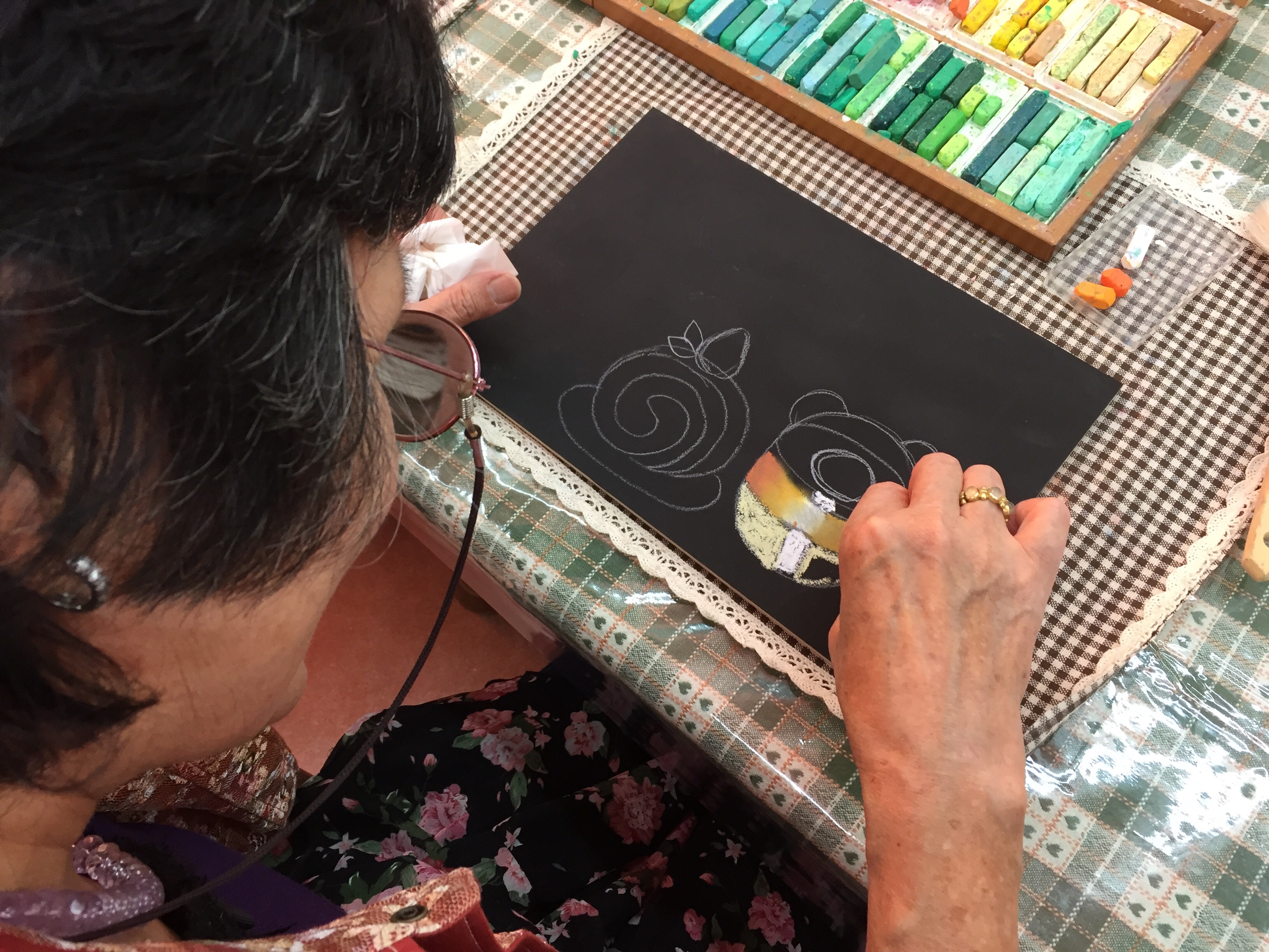 初めてのチョークアート体験で、ドキドキですね。