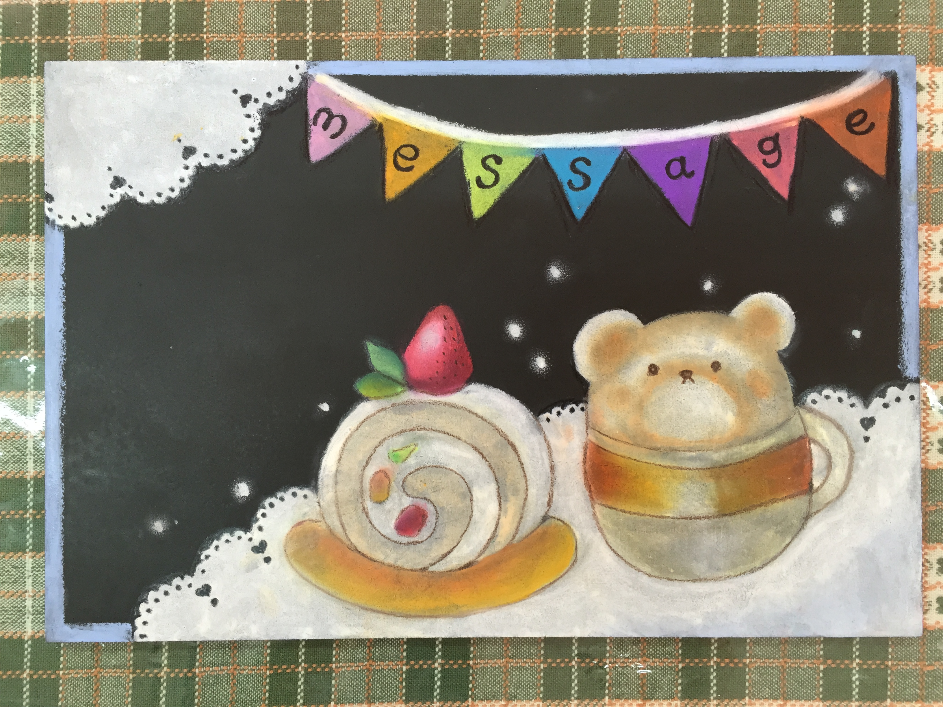 ケーキを描いて、周りはレースのデザインをチョイスしました。