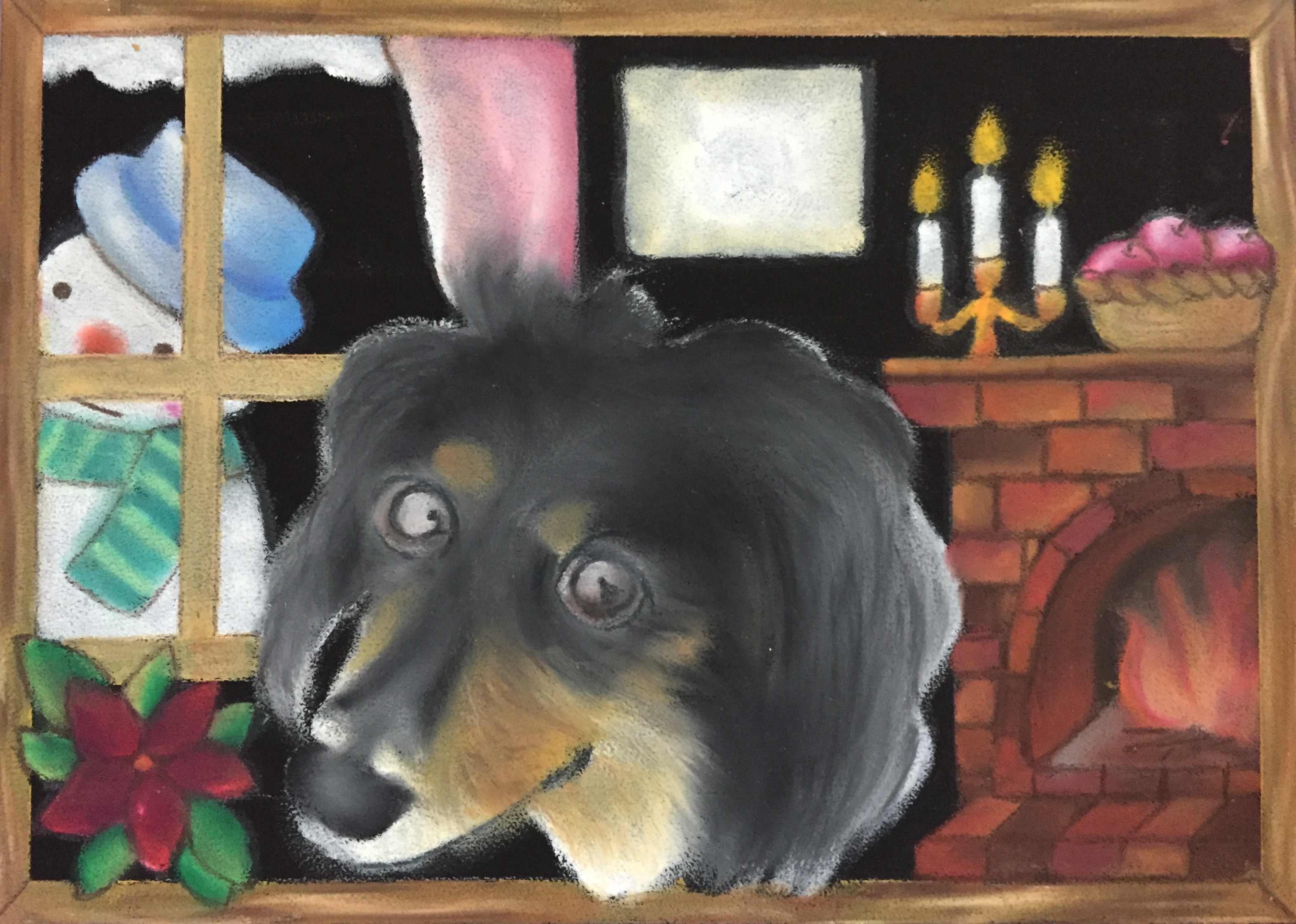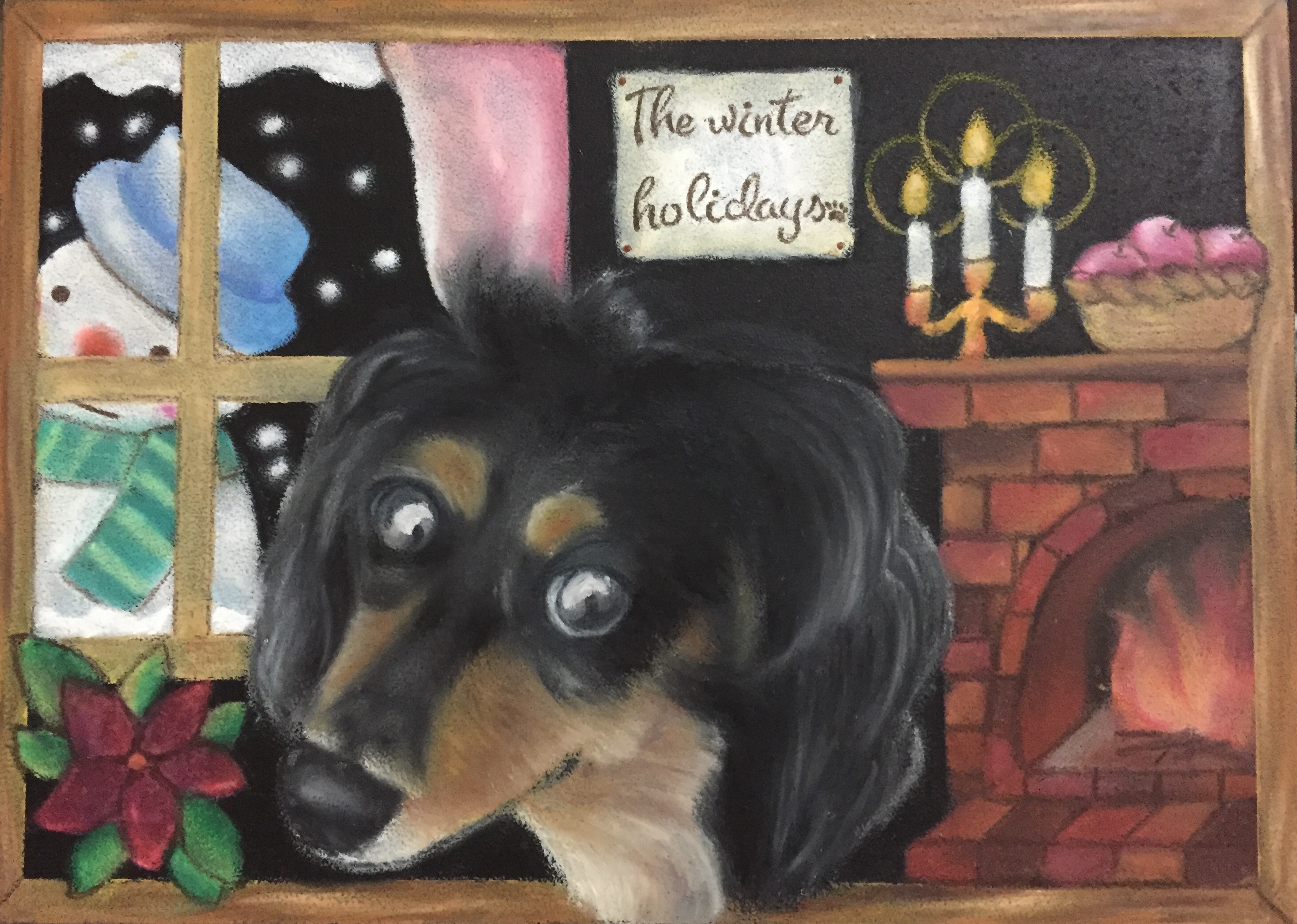 すっかりチョークアート工房もりのこりすのペット似顔絵モデルになっている、チョビちゃん。