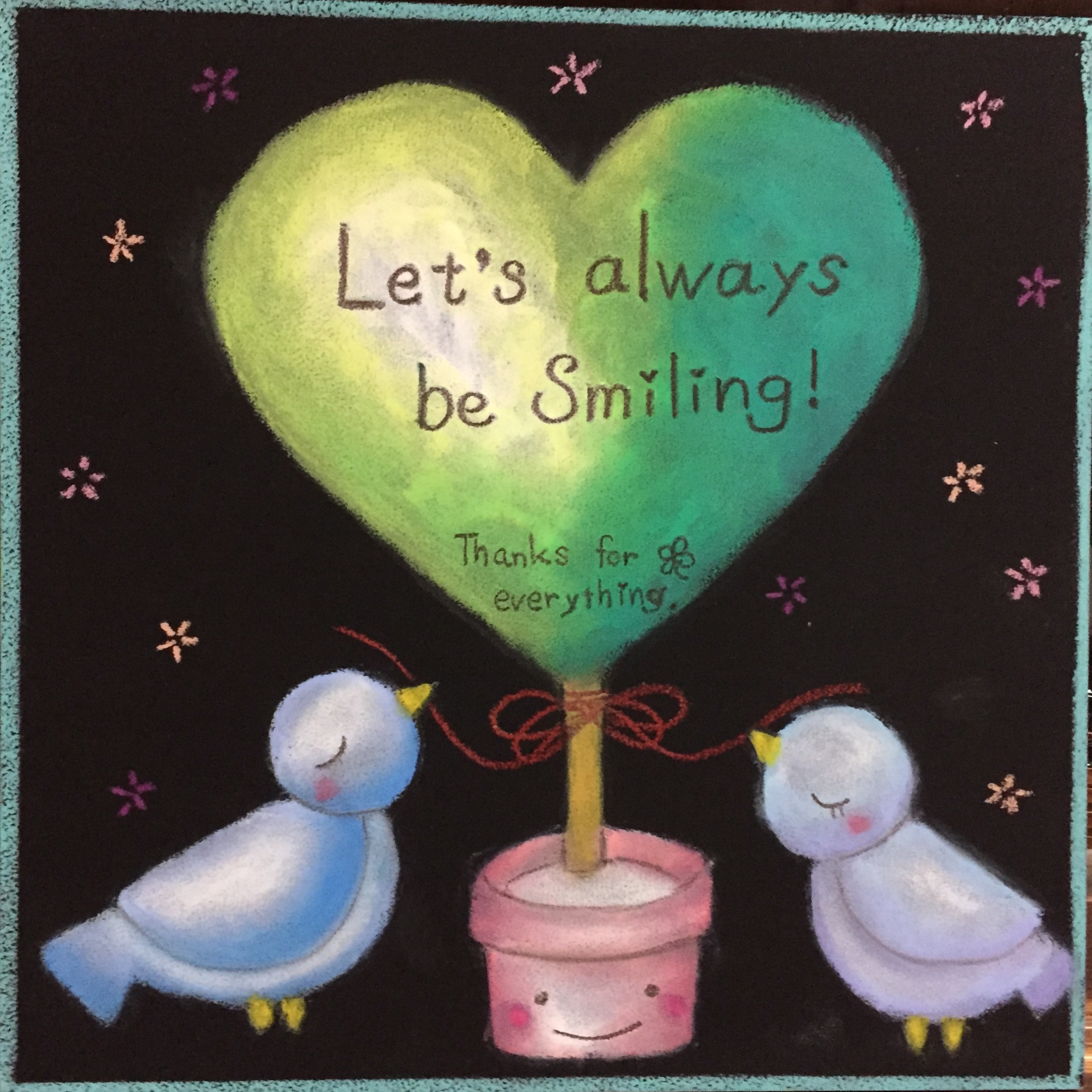 チョークアートとは黒板にオイルパステルを使い指で描くアートです。