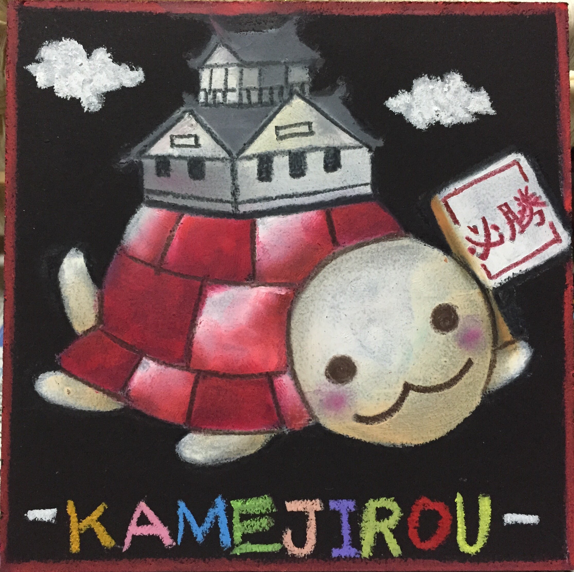 チョークアート工房もりのこりすも大野市のゆるキャラかめじろうさんのボードと恐竜のボードを販売してますよー。