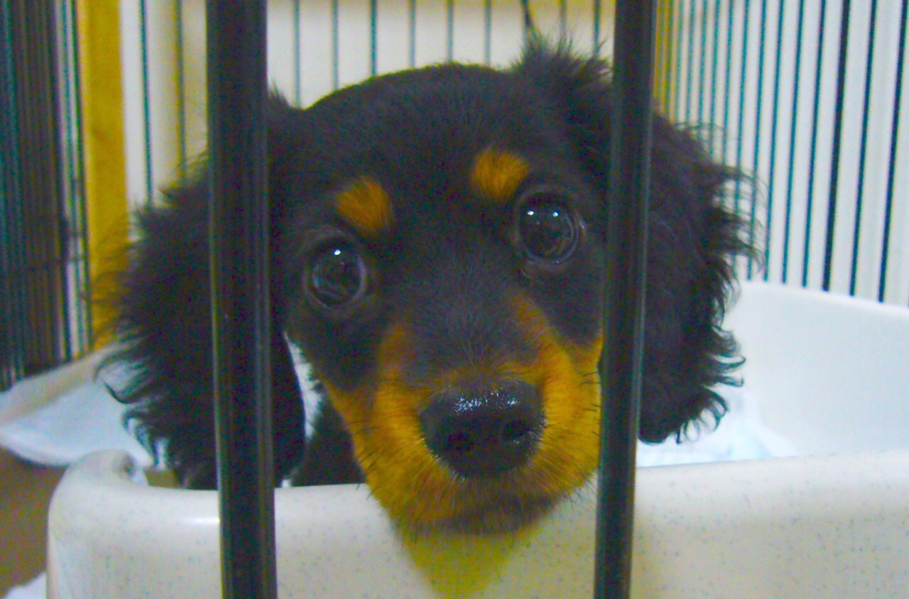 小さな時のチョビちゃんです。まんまるおメメが可愛いですね〜。