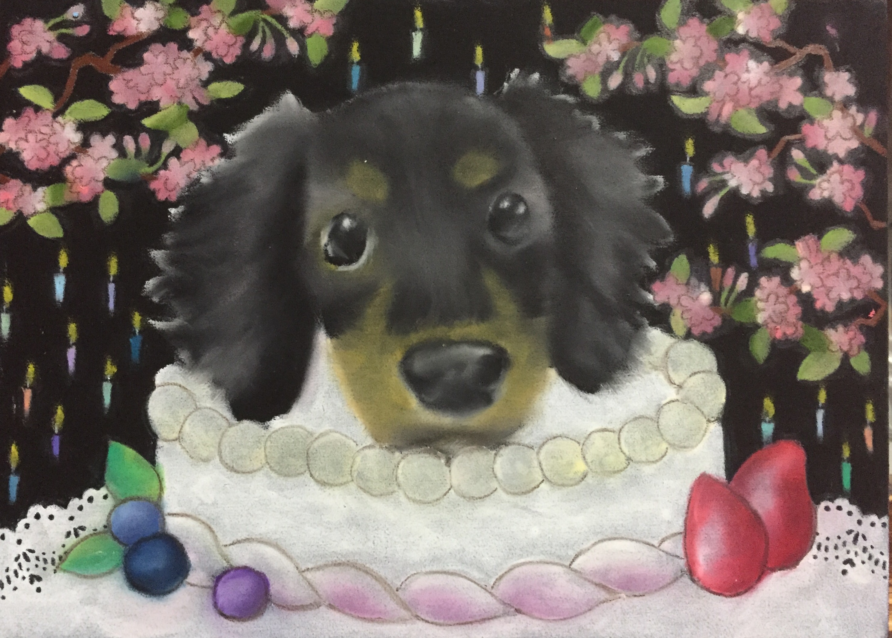 今回は春バージョンでオーダーペットチョークアートのご依頼でした。
