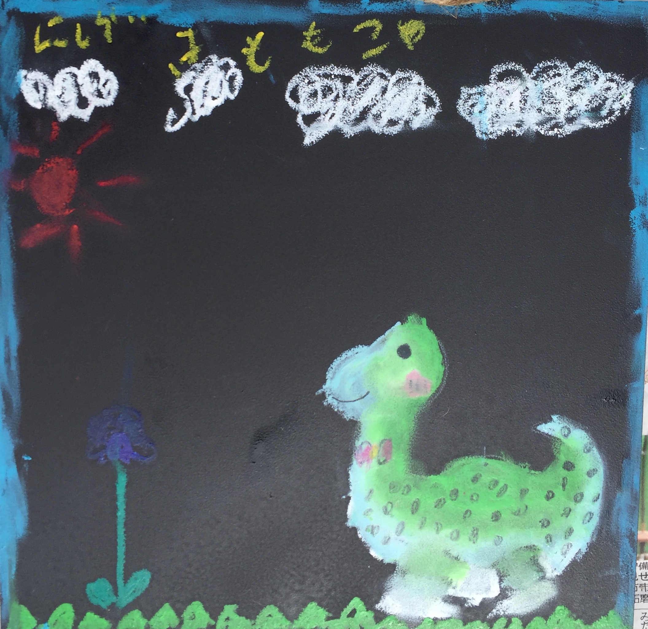 青と緑の枠が素敵な恐竜さんボード。もりのこりすからは星5つです。☆☆☆☆☆