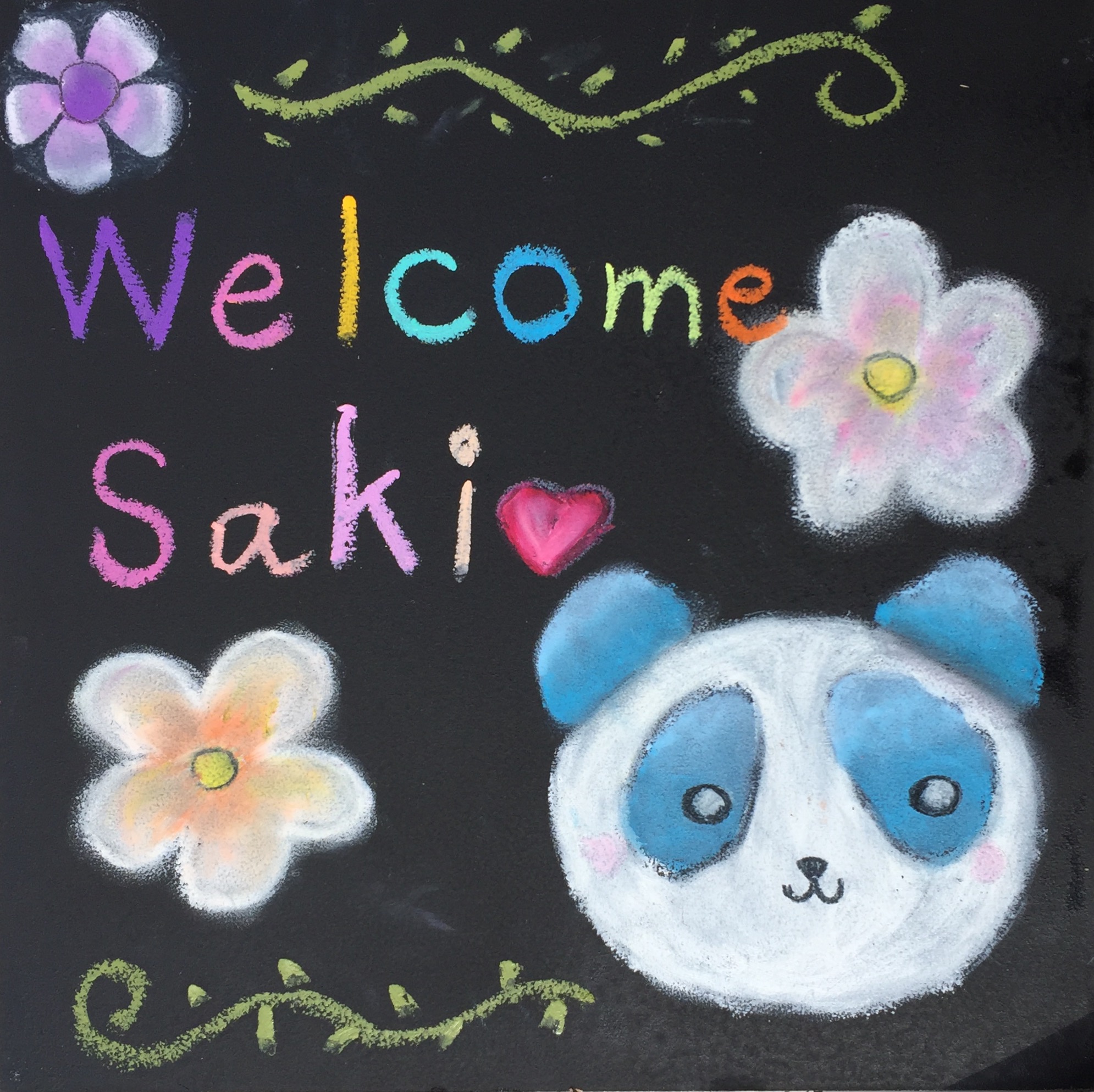 水色のパンダちゃんボードは虹色の文字がカラフルでとっても素敵です。