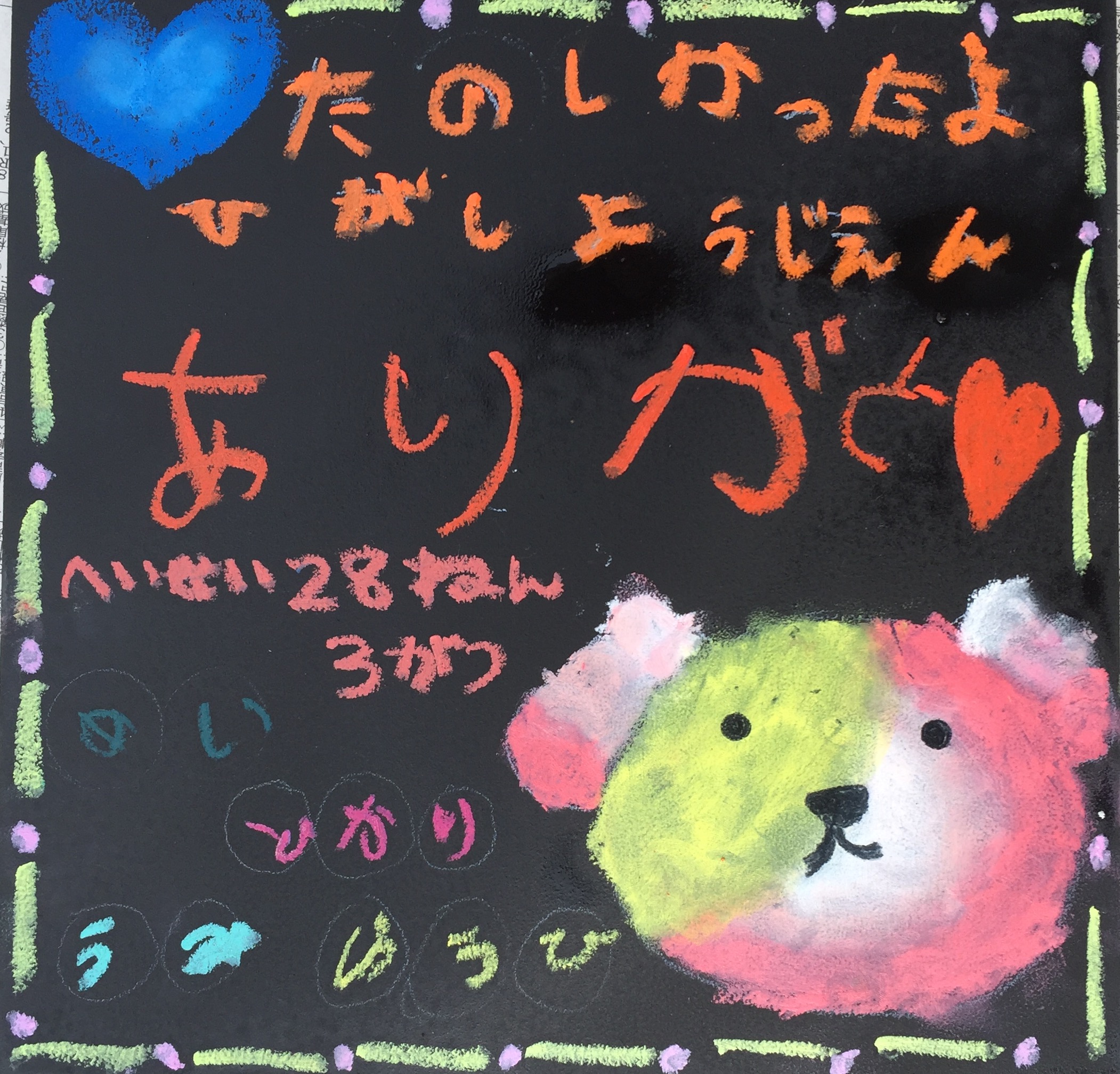 チョークアート工房もりのこりすとしては、みんなが楽しくチョークアート体験をしてくれたのが一番嬉しいです。