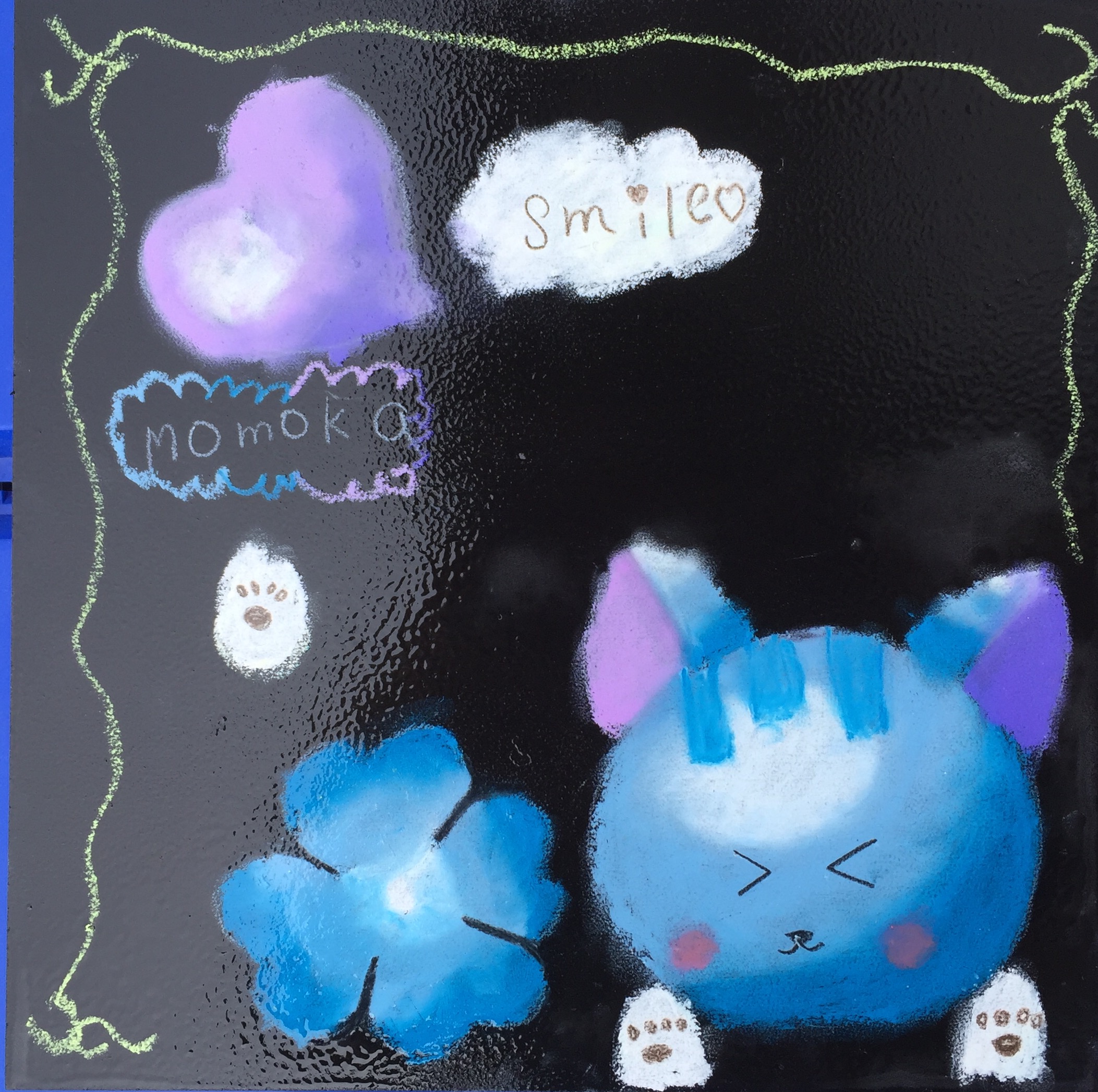 最後まで頑張って描いてくれた青色ねこちゃん。肉球のおててがラブリーです。