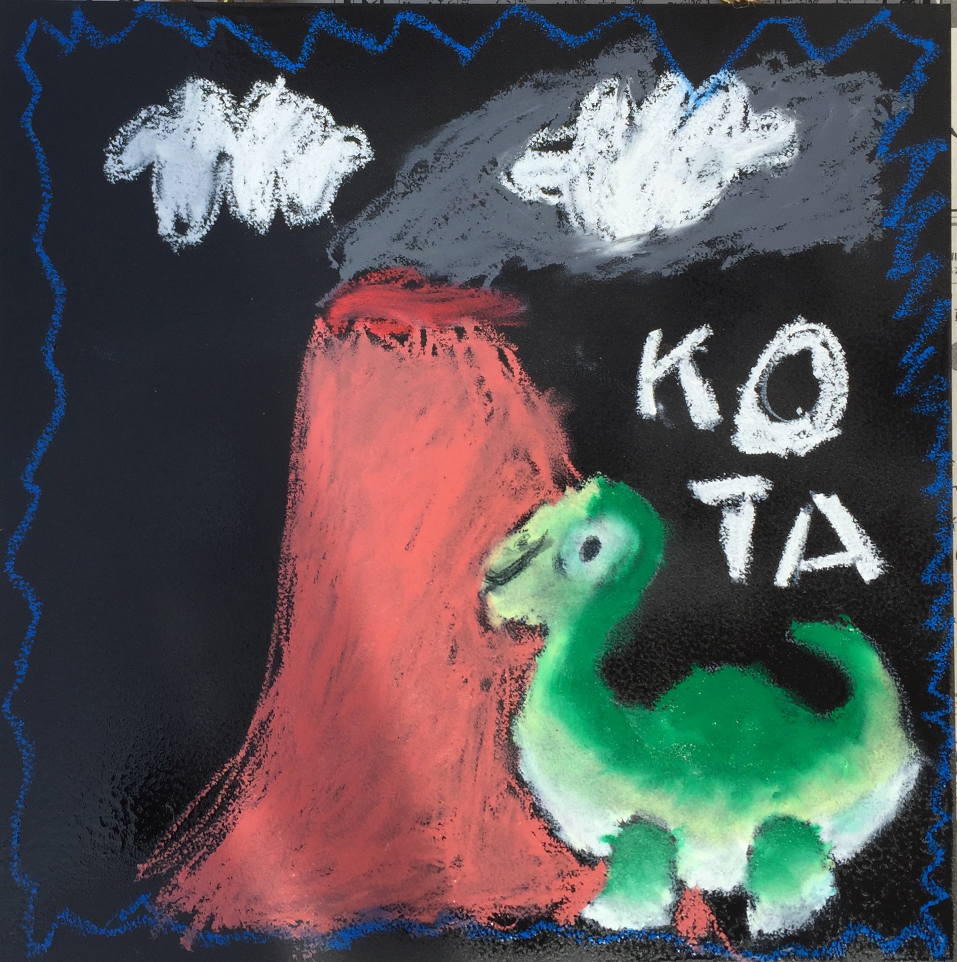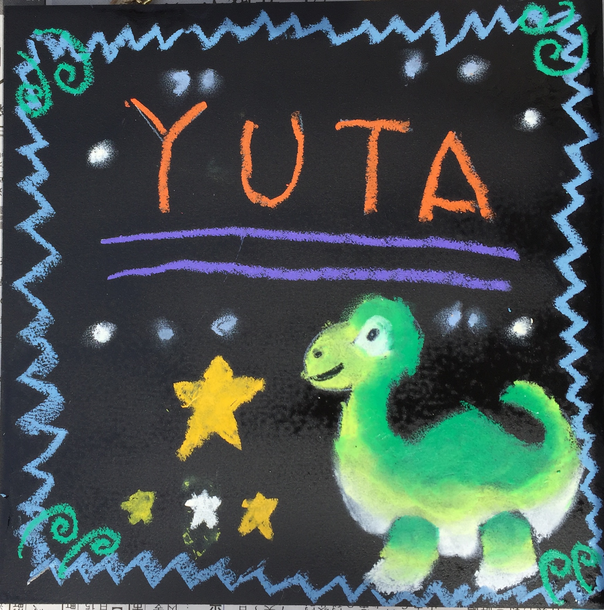 女の子が描いた恐竜さんボード。とっても優しい恐竜さんになりました。
