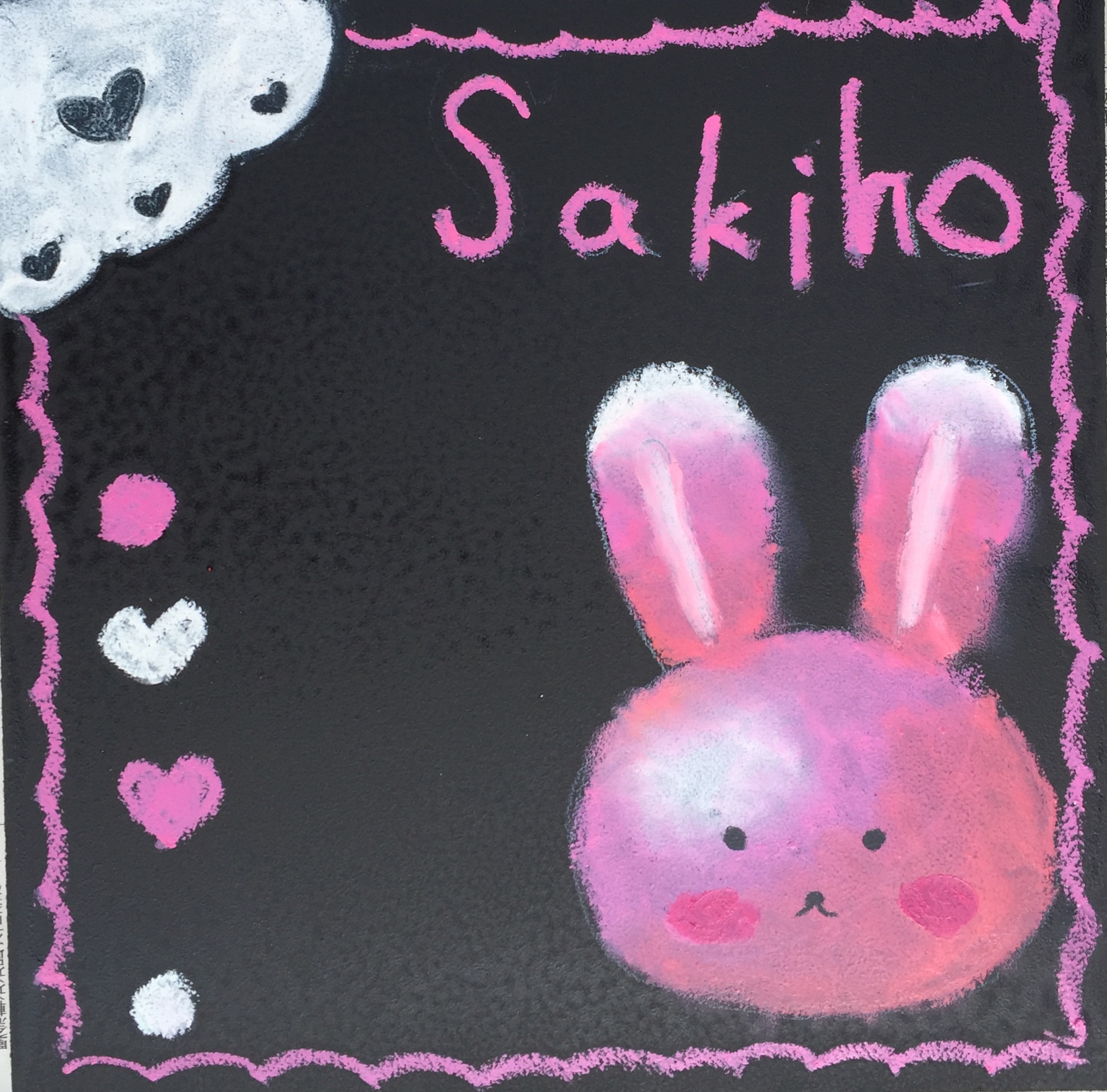ピンクのうさぎちゃんボード。白とピンクでかわいいボードになりました。